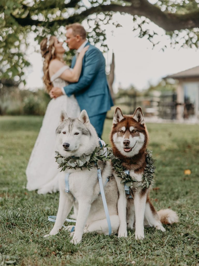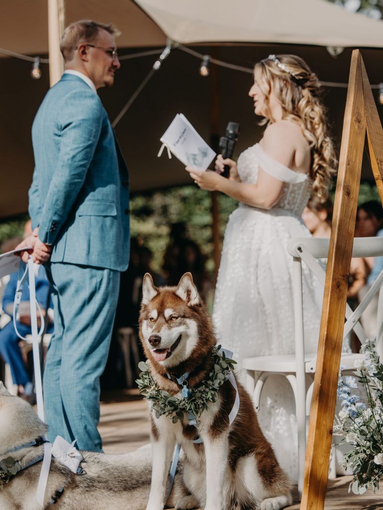 On commence par tes voeux. Si tes chiens font partie intégrante de ta vie, je pense que tu auras envie de les mentionner dans tes voeux, et c’est ce que nous avons choisi de faire. Snow et Echo ont été mentionnés dans nos voeux respectifs, mais nos familles et amis ont également pensé à eux lorsqu’ils en ont parlé dans leurs discours.
