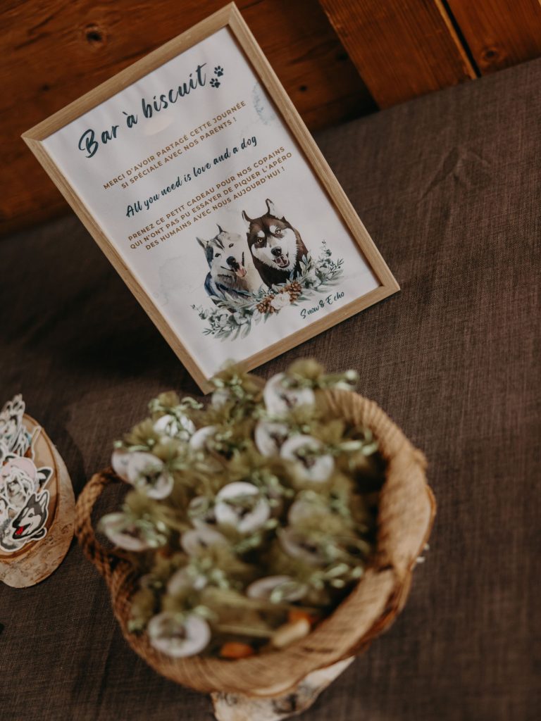 On passe à la partie très fun pour intégrer ton poilu à ton mariage : la déco ! Le champ est libre et l’avantage c’est que tu peux faire tout ce que tu souhaites.
