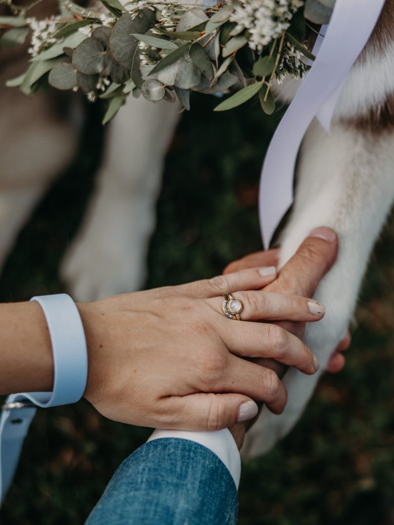 Dans notre cas, nous avons voulu que Snow et Echo nous apportent nos alliances durant la cérémonie, un rôle très symbolique qui comptait beaucoup pour nous.