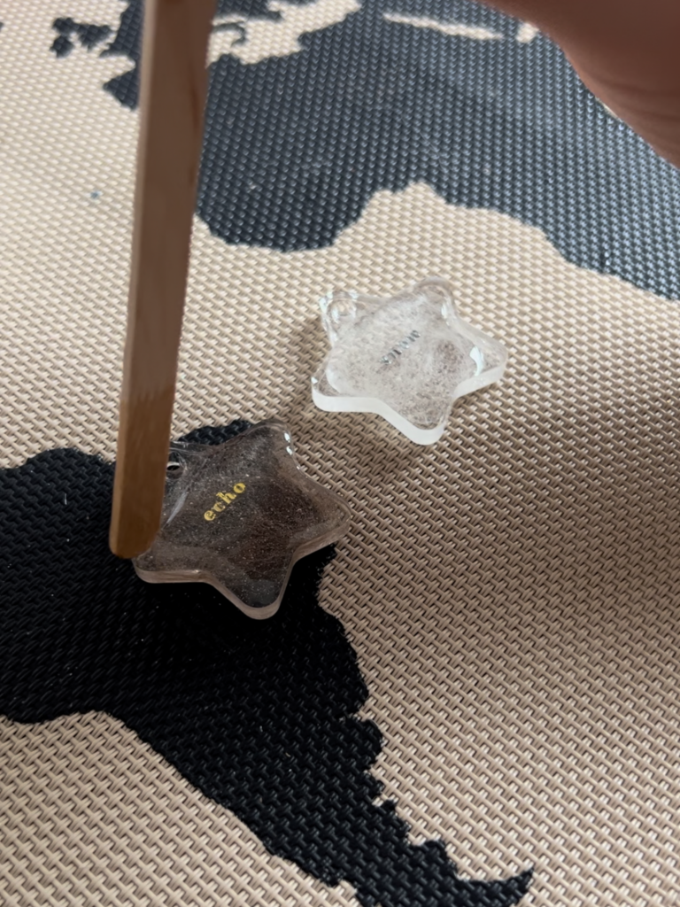 Il est temps de repasser une couche de résine sur ta médaille : réfère toi à l’étape 2 et prépare un peu de résine transparente.