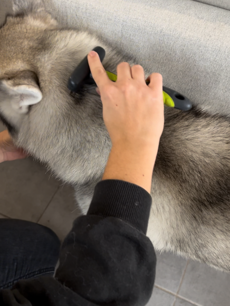 Ensuite tu peux sortir tous tes éléments et les disposer sur la table. Pour les poils de ton chien, brosse le pour récupérer une petite touffe de poils que tu vas utiliser pour créer ton médaillon. Pas la peine de faire un brossage intégral, quelques uns suffissent !