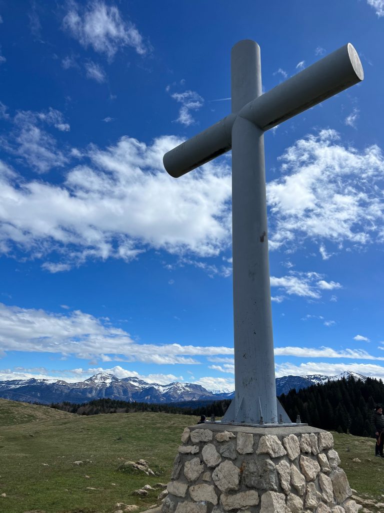 Le sentier continue cette fois ci dans un alpage et il faut ensuite monter jusqu’à la croix. C’est le seul moment qui grimpe un peu sur cette randonnée, mais je vous rassure, rien de méchant ! Le point de vue est sublime : Mont Blanc, chaine des Aravis, vallée, c’est un panorama à 360°.