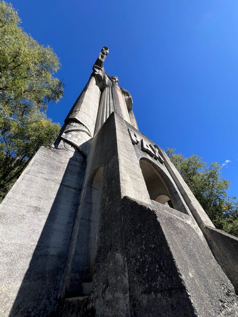 Quand j’ai découvert cette statue, je me suis franchement posé la question « mais qu’est-ce qu’elle fait là? ». Oui parce qu’il faut vous imaginer que cette statue est littéralement plantée en plein milieu d’une forêt, à 1200m d’altitude, et qu’elle mesure 25mètres de haut. Oui, oui tu as bien lu, 25 mètres de haut !
