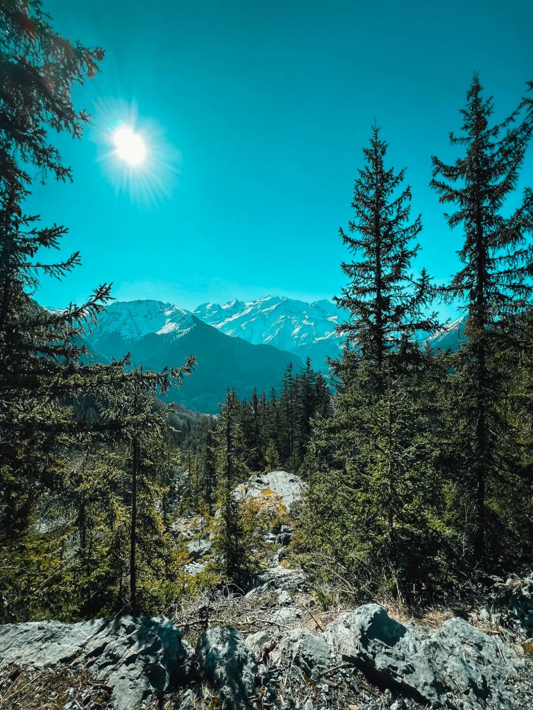 Le début du parcours propose une montée, principalement en forêt, mais on rejoint rapidement un chemin découvert qui laisse apercevoir des montagnes majestueuses. Un plaisir pour les yeux, et un terrain de jeu exceptionnel pour les amateurs de photographie.