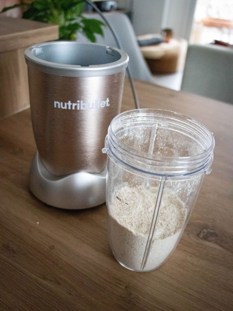 - 150 g de farine complète ou de farine d’avoine (tu peux mixer des flocons d’avoine)